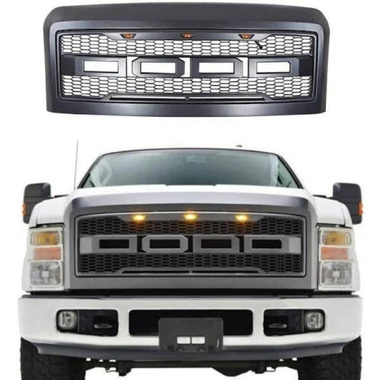 Sleek Matte Black Raptor Grill for Ford Trucks with Lights & Letters
