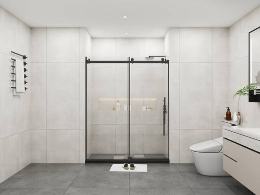 Sleek Matte Black Frameless Shower Door with Soft Close