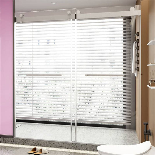 Sleek Frameless Double Sliding Shower Door in Brushed Nickel