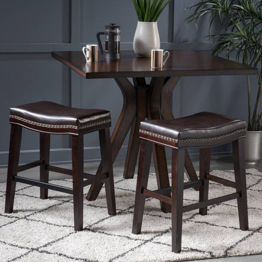 Chic Dark Brown Saddle Counter Stools with Nailhead Detail (Set of 2)