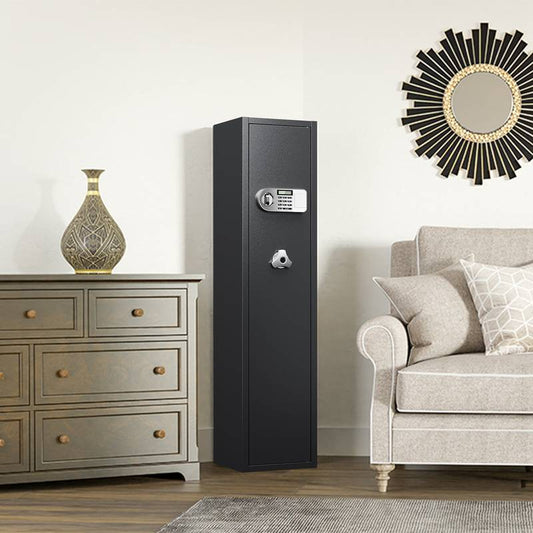 Black Steel Gun Safe with LED Lights & Removable Shelf