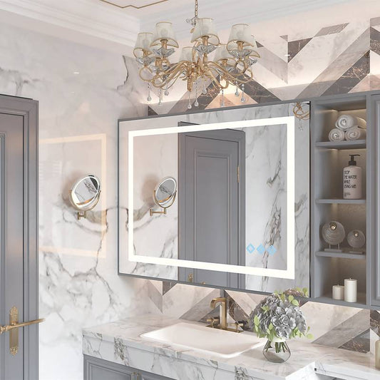Glow & Go Bathroom Mirror: Dual LED Light, Anti-Fog Magic, Dimmable Delight!