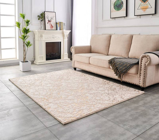 Chic Gold-Gilded Beige Faux Fur Area Rug