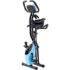 - Introducing our versatile Folding Exercise Bike in a stylish light blue finish. This compact fitness solution allows you to switch between an upright and recumbent position, perfect for intense or casual workouts.