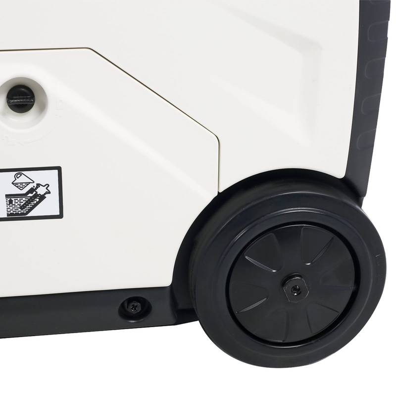 - - Effortlessly portable with two 5-inch wheels and a foldable handle for easy storage and transport.