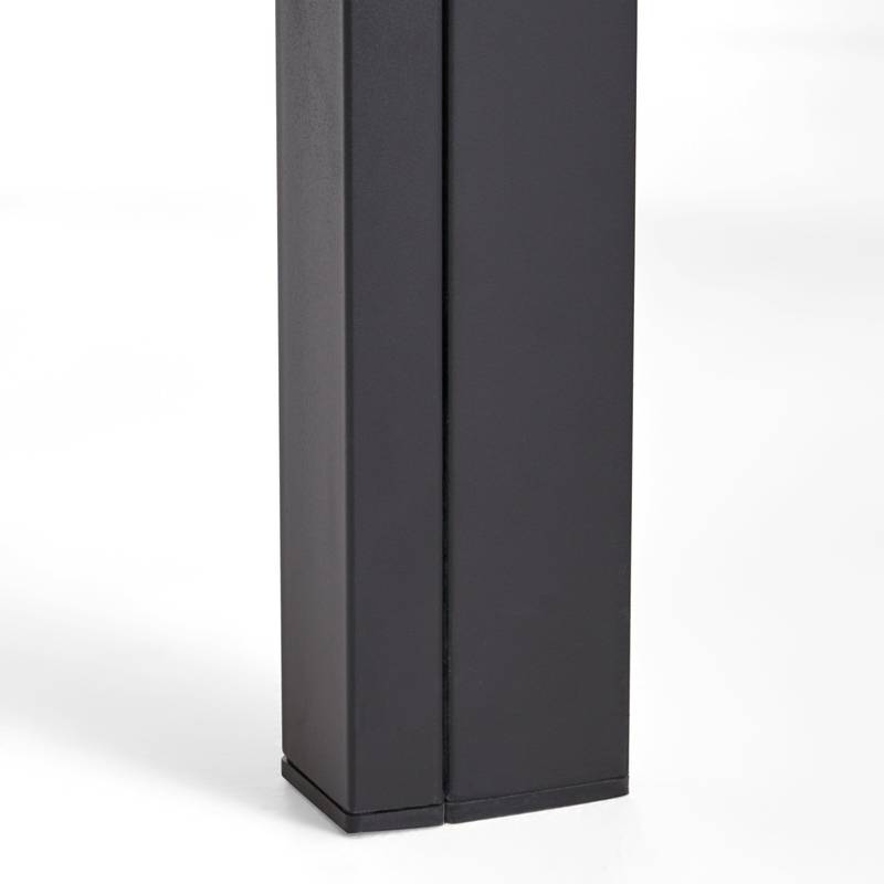 - Assembly is required, but the sleek design and sturdy black iron legs create an eye-catching centerpiece for your patio or garden. Enjoy meals in style with this fabulous dining table.
