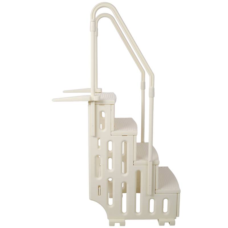 - Upgrade your swimming experience with our durable white pool steps! Designed for above-ground pools, these sturdy polypropylene steps can support up to 400 pounds, making them perfect for heavy use.