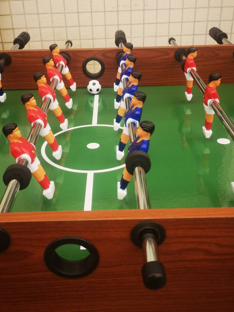 - Introducing our stylish and sporty 4ft foosball table, perfect for family fun and indoor fitness! Crafted from durable MDF and steel, this table combines quality and design for a great gaming experience.