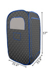 - Transform your wellness routine with our sleek Black and Blue Sauna Tent. Designed with your comfort in mind, this innovative tent features double-sided zippers, allowing you to relax while reading, watching movies, or listening to music.
