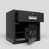 - Introducing our robust black steel safe, designed to keep your valuables secure and accessible.