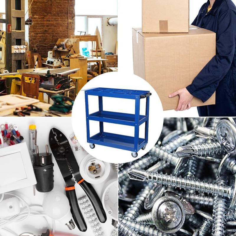 - Introducing our durable rolling tool cart, designed for versatility and convenience. Crafted from heavy-duty ABS and Q235 steel, it boasts a sleek blue powder-coated finish that resists rust and is easy to clean.