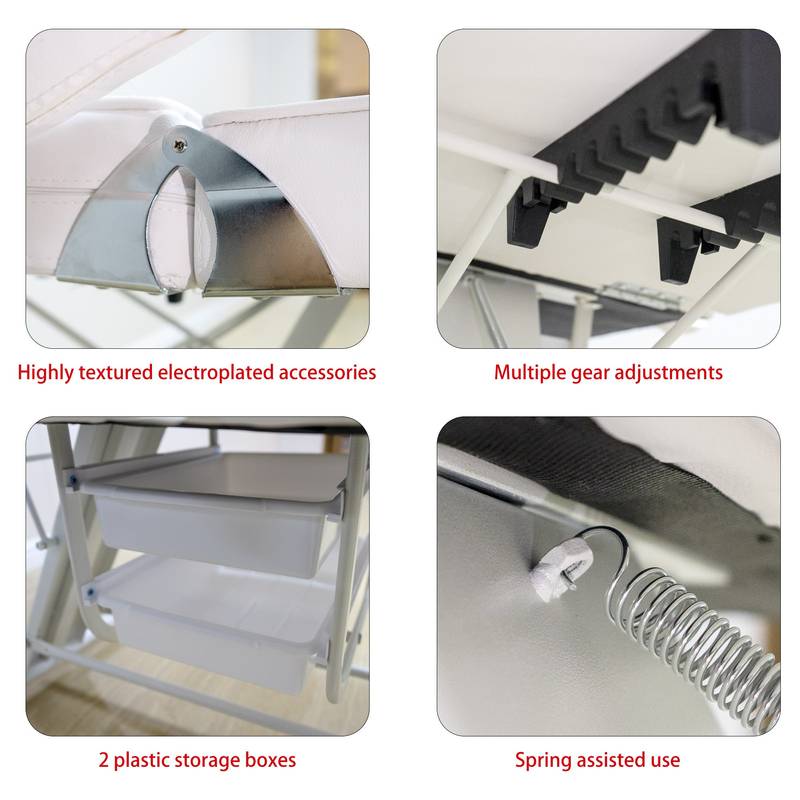 - Enjoy user-friendly features like a detachable headrest for added comfort and high-quality electroplated accessories that elevate the overall look. Plus, you'll receive two lightweight plastic storage boxes for easy organization. With a spring-assisted mechanism, operations are smooth and effortless — perfect for everyone, including those with limited strength.