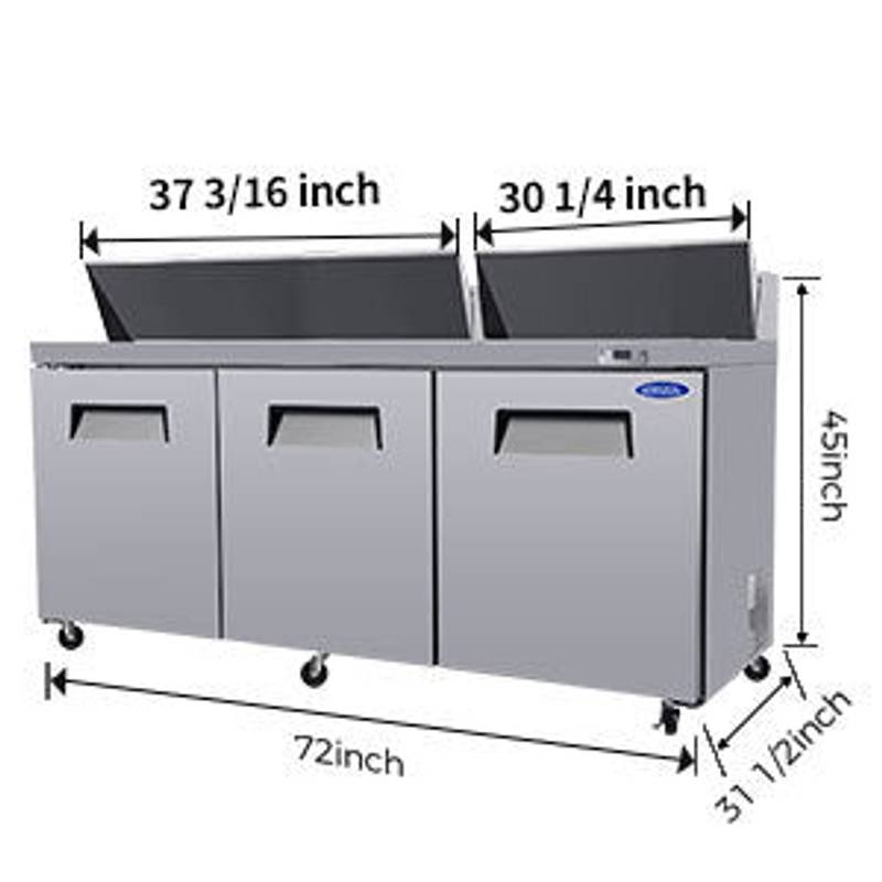 - Introducing our premium Salad Sandwich Prep Table Refrigerator – the perfect solution for your food preparation needs! Crafted from durable stainless steel with a sleek silver finish, this refrigerator is both stylish and efficient.