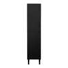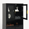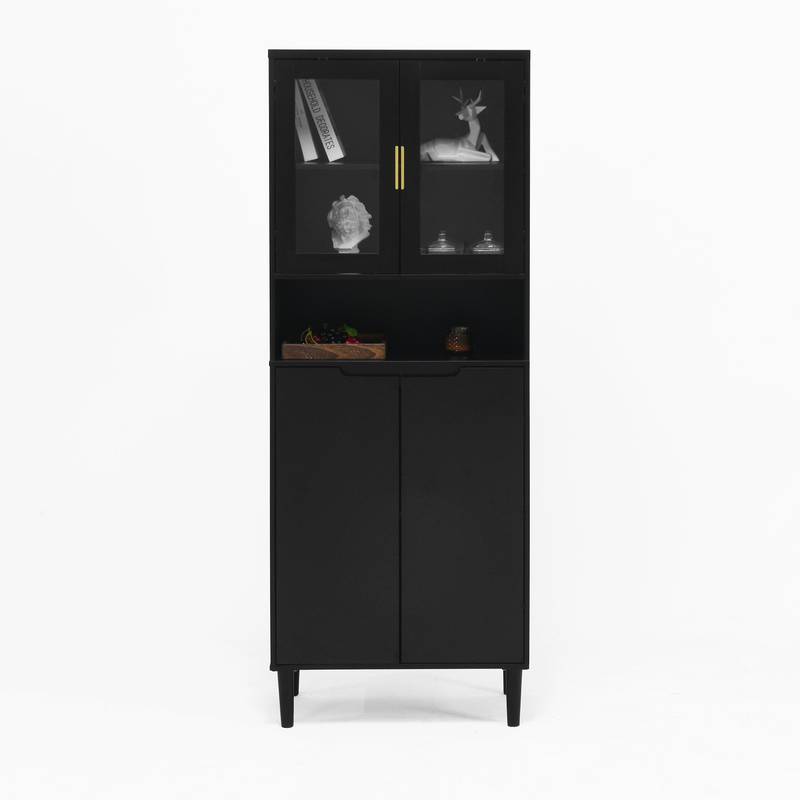 - Discover the perfect blend of style and functionality with this tall black storage cabinet. Measuring 23.62" L x 13.78" D x 63" H, it optimizes your storage space with two spacious glass display compartments ideal for showcasing books, decor, or office files.