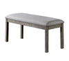 - Elevate your dining area with this stylish gray bench, crafted in Vietnam from durable rubberwood and upholstered in soft, linen-like fabric for ultimate comfort. With its rustic design and sturdy construction, it effortlessly combines classic and modern aesthetics, making it a versatile addition to any dining room.