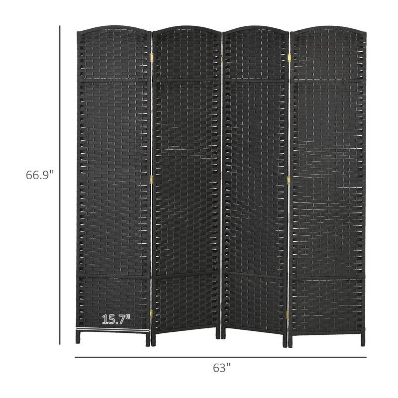 - Elevate your space with our stylish hand-woven room divider! Crafted from a sturdy Paulownia wood frame and durable polypropylene webbing, this black partition combines beauty and functionality. Measuring 63 inches wide and 66.9 inches tall, it serves as a versatile privacy screen for any room—be it the living room, bedroom, or home office.