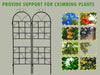 - Transform your garden with this sleek black garden trellis, crafted from durable iron. Standing 72 inches tall and 19.6 inches wide, it provides robust support for climbing plants like ivy, roses, and cucumbers, encouraging upward growth. The powder-coated finish ensures it withstands the elements, while its lightweight design makes installation a breeze. Each set includes two trellises and screws, making setup straightforward. Easily connect multiple trellises to create an impressive flower wall. Perfect for adding charm to any garden space!