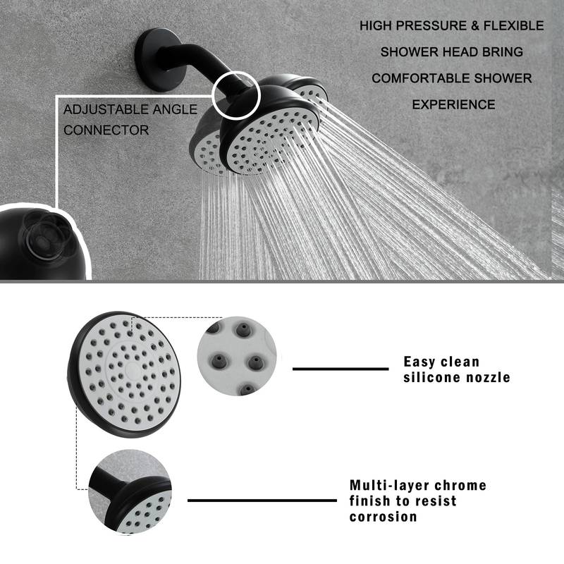 - Upgrade your bathroom with our elegant matte black shower faucet set, crafted from durable metal for long-lasting use. Designed with anti-clogging silicone nozzles, it effortlessly wipes away calcium buildup while being gentle on the skin. The powerful brass shower head and pressure balance valve ensure a consistent water flow and temperature, letting you enjoy your shower without surprises. Compatible with most systems thanks to standard 1/2" NPT threads, this UPC/cUPC certified set guarantees safety and performance. Plus, we offer a warranty for peace of mind. Elevate your shower experience today!