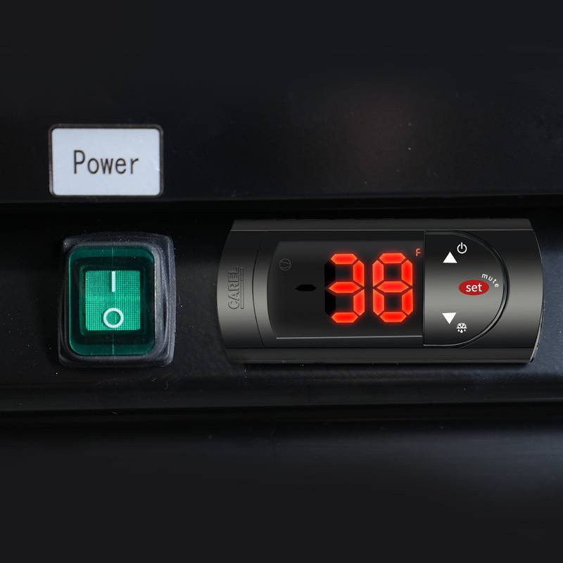 - - Precise Temperature Control with a CAREL digital controller maintaining optimal temperatures (32-44℉) and auto defrosting every 6 hours.