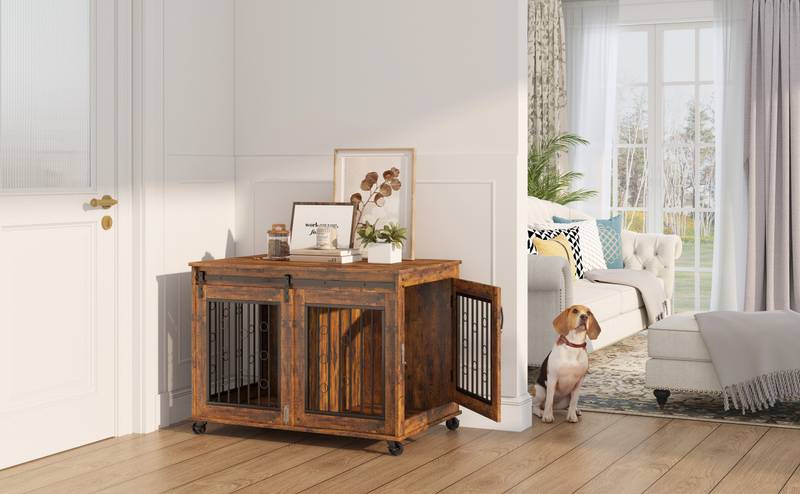 - With a sleek rustic design and easy assembly in just 40 minutes, this dog crate is not only a safe haven for your pets but also a stylish addition to your home.