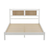 - Elevate your bedroom décor with our stylish 3-piece Queen Size Wooden Platform Bed set, featuring a stunning natural rattan headboard and matching nightstands.