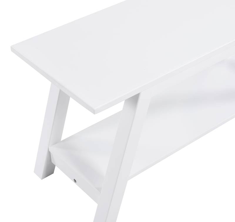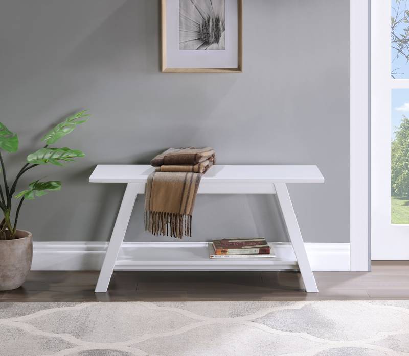 - With a spacious top surface and a convenient lower shelf, this bench offers versatile storage for everyday essentials or decorative items. Designed for stability and longevity, its sturdy tilted legs ensure durability you can trust.