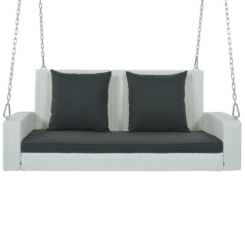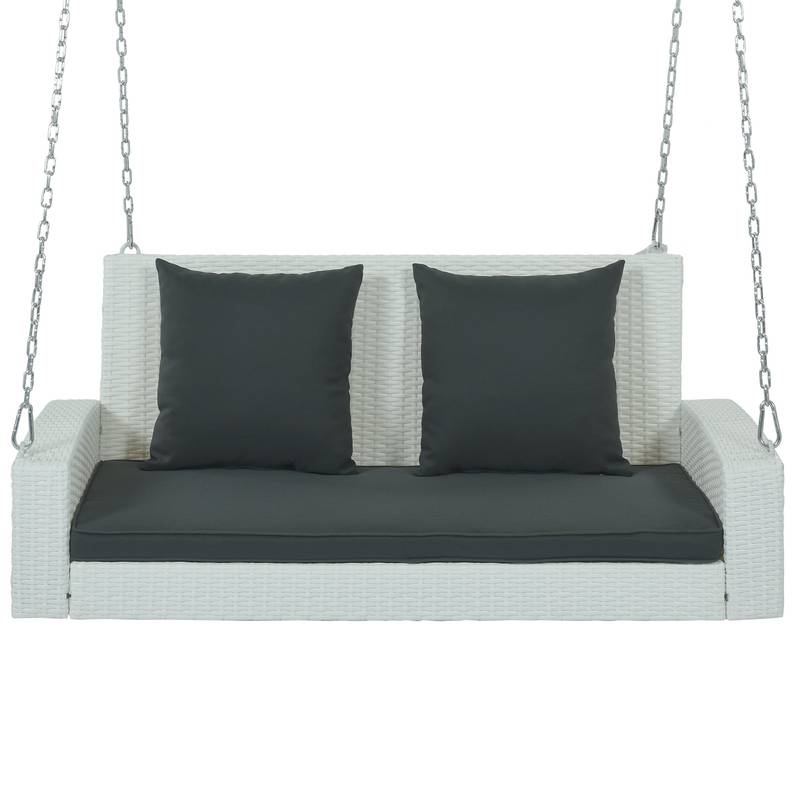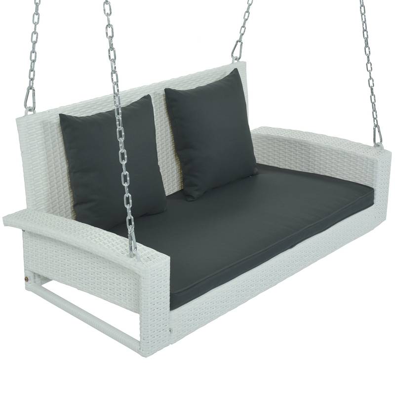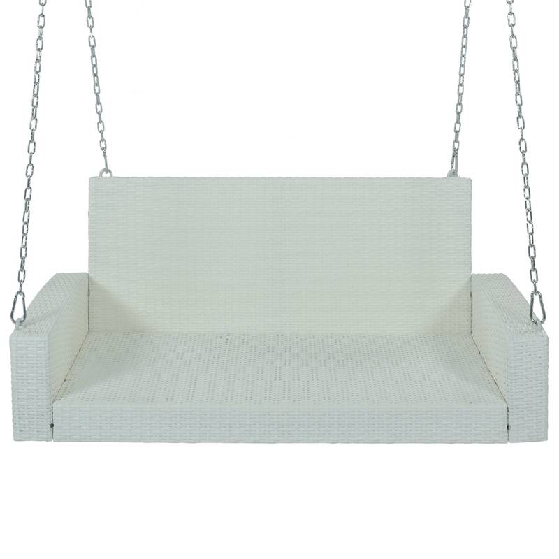 - Introducing our beautifully crafted wicker porch swing, designed to enhance your outdoor space. Made in Vietnam, this white wicker swing seats two comfortably, with a weight capacity of 500 lbs. Perfect for cozy chats or relaxing moments in your porch, backyard, garden, or patio.