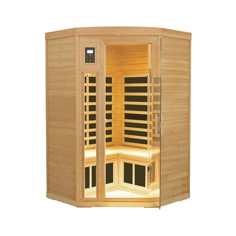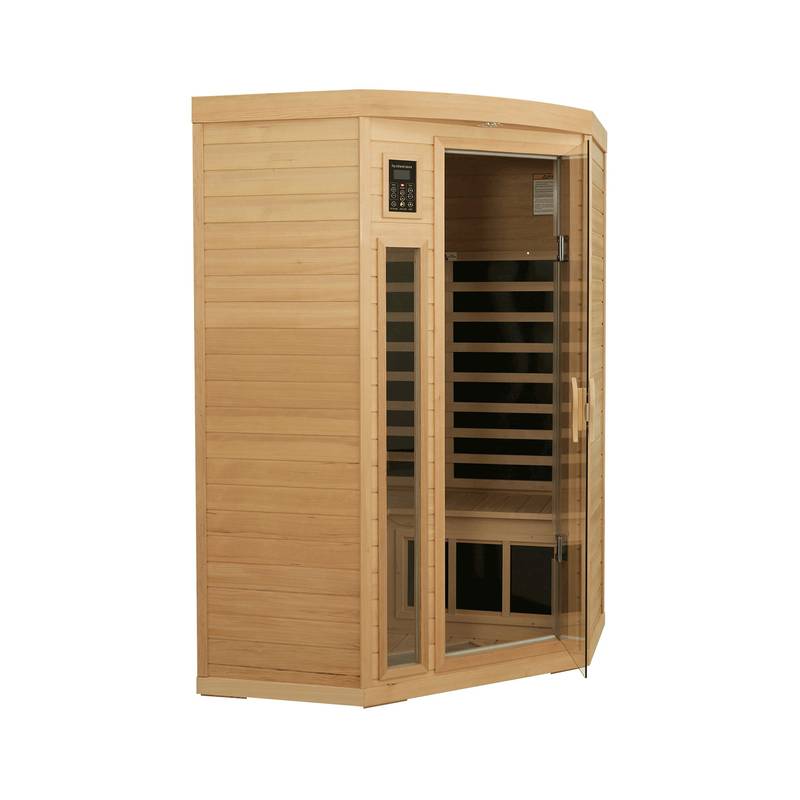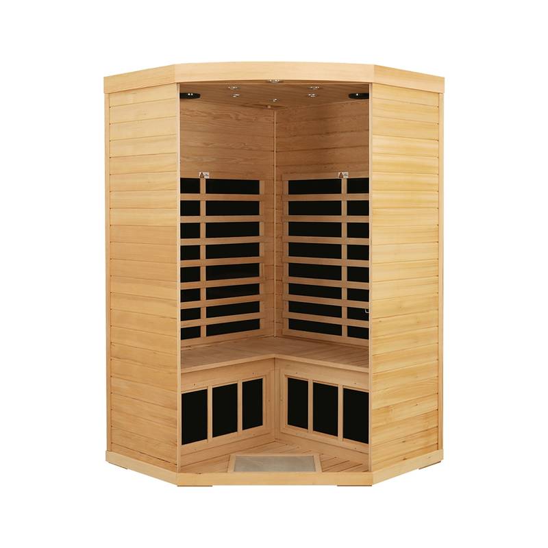 - Transform your wellness routine with our Natural Wood Hemlock Pentagonal Far Infrared Sauna. Spanning 45” x 45” and just 7” in height, this sauna combines modern design with functionality. Its durable metal and wood construction ensures longevity.