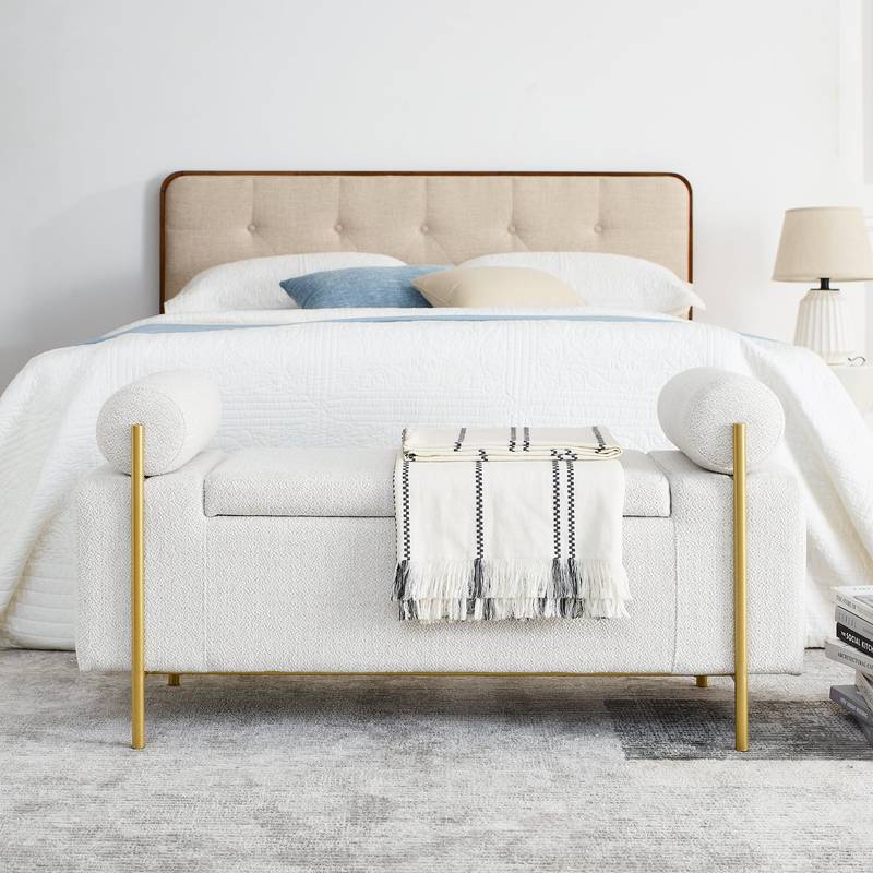 | Product Name | Chic Linen Storage Bench with Stylish Arms and Sturdy Legs |
