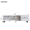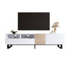 - Elevate your entertainment setup with this stylish TV stand, perfect for TVs up to 80 inches. Sleek and modern in white MDF, this cabinet combines function and aesthetics with its geometric design and minimalist charm.