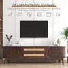 - Upgrade your living space with our stylish Rattan TV Stand, designed for TVs up to 75 inches. Crafted from solid wood and MDF, its natural wood and brown tones offer a warm, timeless appeal that seamlessly fits various interior styles.