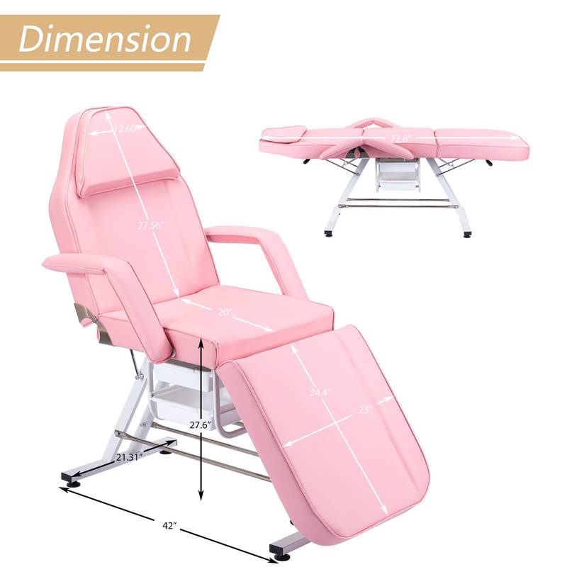 - With dimensions of 72.8" L x 24.4" W x 27.6" H and a weight capacity of 330 lbs, this setup is designed to suit any client comfortably. Clean-up is a breeze, so you can focus on delivering exceptional service. Experience comfort and efficiency with this essential chair and bed combo.