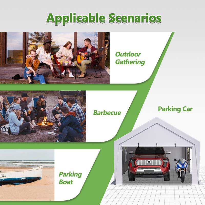 - Constructed from reinforced 180G PE material, this carport is tear-proof, waterproof, and UV-resistant, offering top-notch protection for your vehicle. The secure installation is a breeze with no extra tools needed—simply follow the numbered components and included instructions for a quick setup.