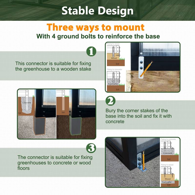 - - Sturdy construction with thickened corner post stakes provides stability, connecting the greenhouse securely to the ground.