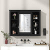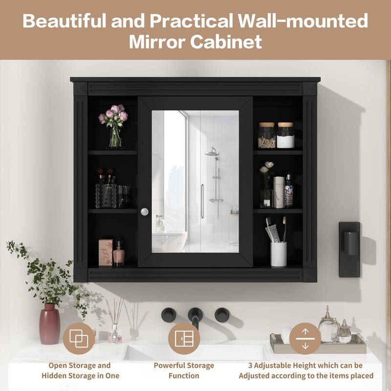 - Introducing the 35" x 28" Wall-Mounted Bathroom Storage Cabinet, a stylish and functional addition to your bathroom. Crafted from high-quality MDF, this modern medicine cabinet features a sleek black finish and a striking mirror that not only enhances your space but also makes getting ready a breeze.