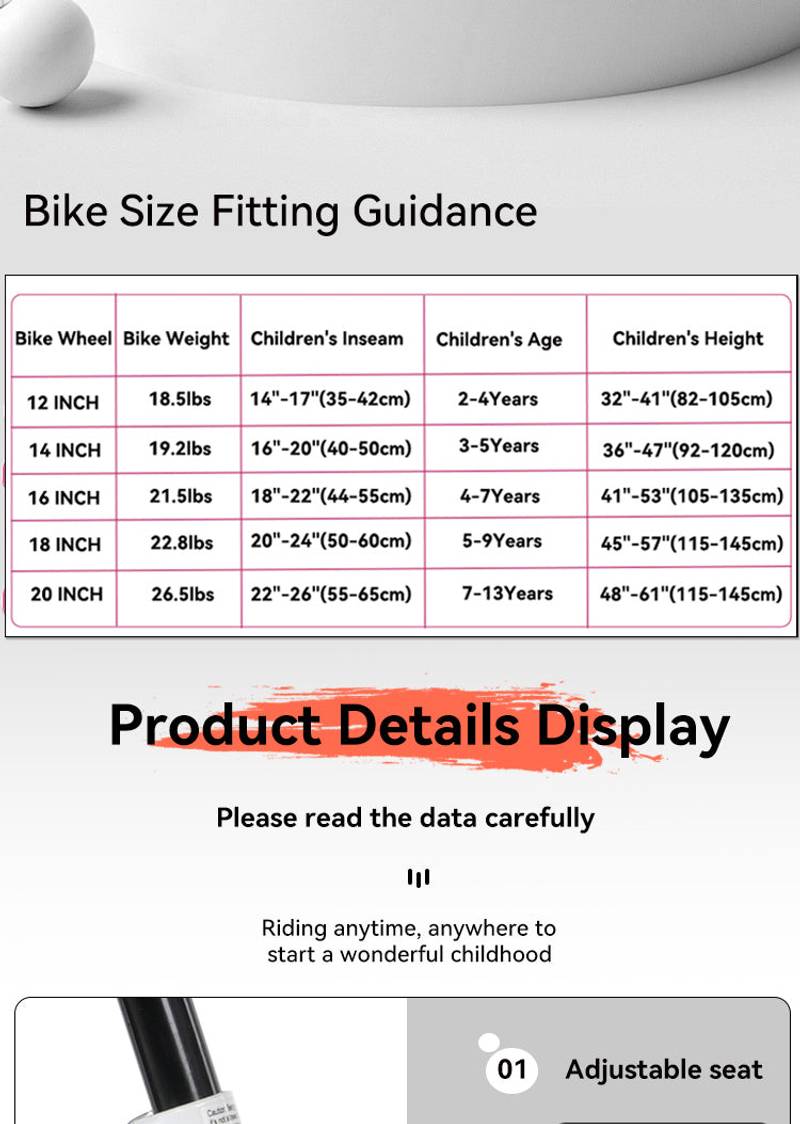 - Measuring 43.30 inches in length, 20.30 inches in width, and a height of 28.90 inches, this bike weighs just 16.65 lbs, making it easy for young riders to handle. It comes 85% assembled with handy tools included, making setup a breeze. Plus, detachable training wheels and an adjustable saddle and handlebars make it adaptable as your child grows. Get ready for hours of exploration and fun!