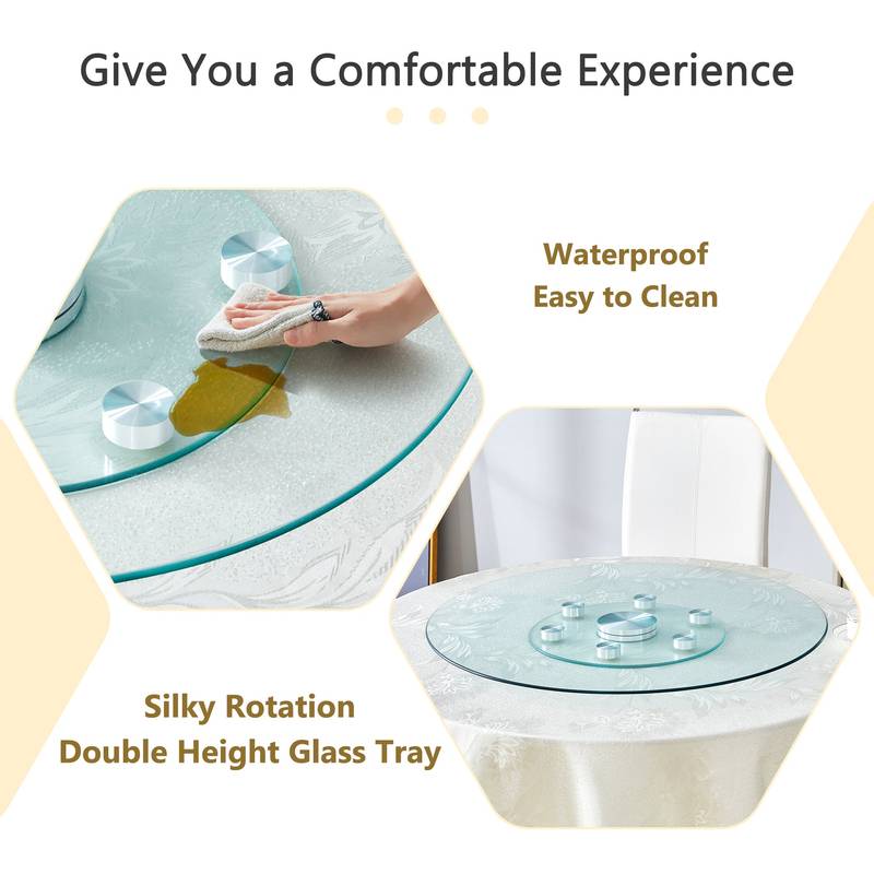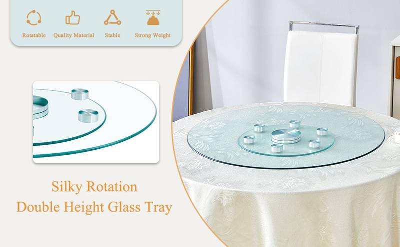 - Introducing our stunning double-layer rotatable circular tempered glass tabletop, designed to elevate your space with style and functionality.