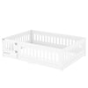 - Transform your child's room with our stylish and safe floor bed, designed to spark imagination and complement any decor. The sleek white finish and unique arched fence create a playful atmosphere while providing essential safety features.