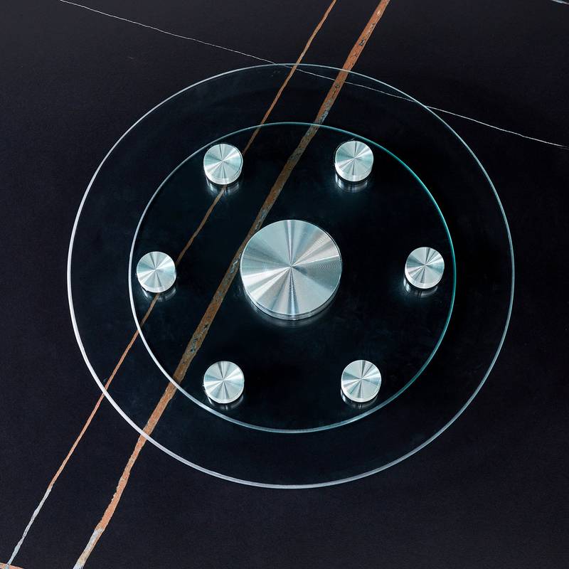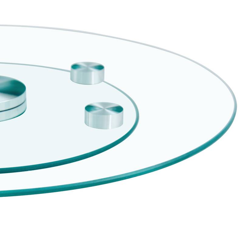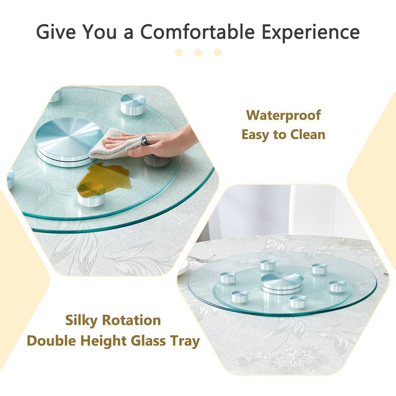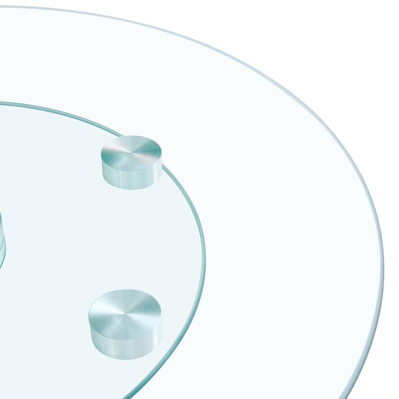 - Elevate your space with our stunning double-layer rotatable circular tempered glass tabletop. With its sleek, transparent design, this versatile piece not only adds a modern touch to your decor but also allows you to showcase your items beautifully.