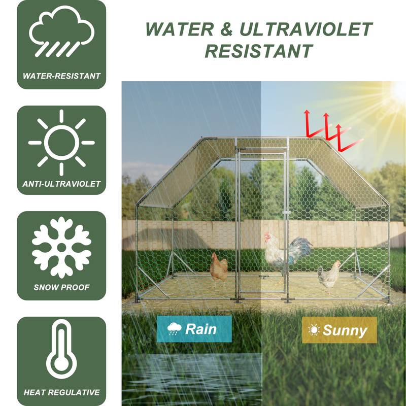 - Introducing our heavy-duty chicken coop, the perfect sanctuary for your pets! Crafted from robust galvanized steel and coated with eco-friendly protection, this coop is built to withstand the elements and last for years.
