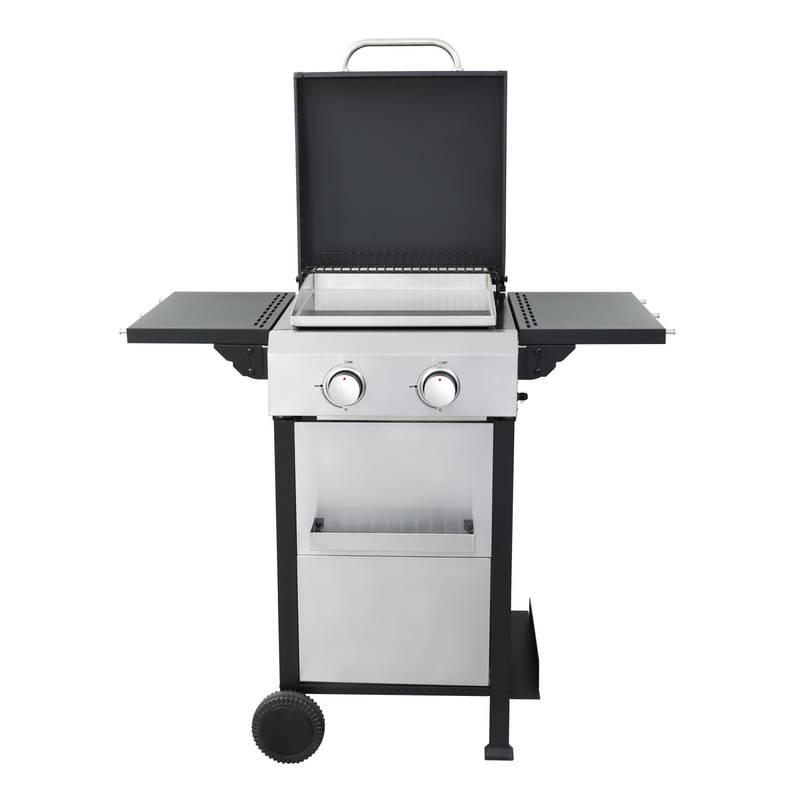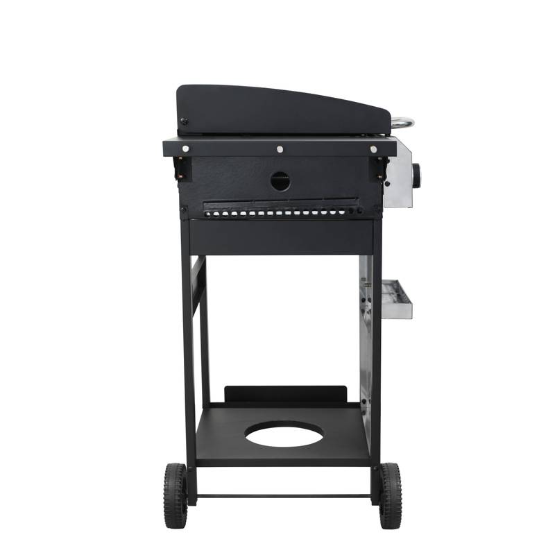 - Introducing our versatile outdoor grill, perfect for any garden or patio setting. Crafted from durable iron and stainless steel, it boasts an elegant black and silver finish for a sleek look.