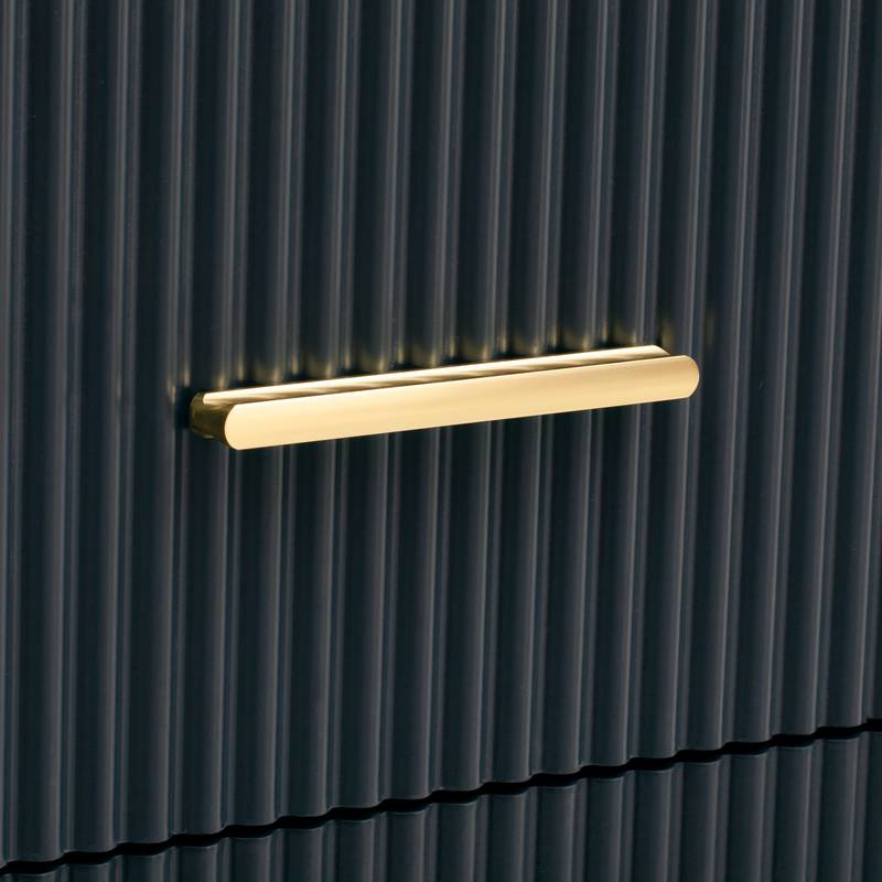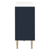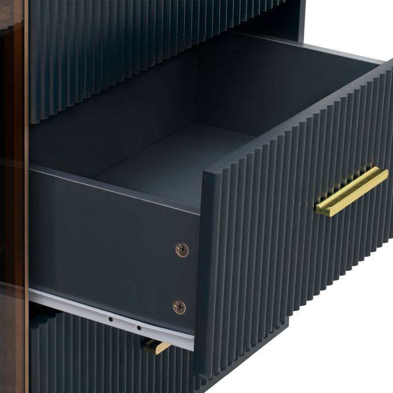 - Introducing our elegant Navy Blue Storage Cabinet, crafted with a modern, simple design that exudes light luxury. Its amber-yellow glass doors and marble-like tabletop, paired with gold metal legs, bring sophistication to any space.