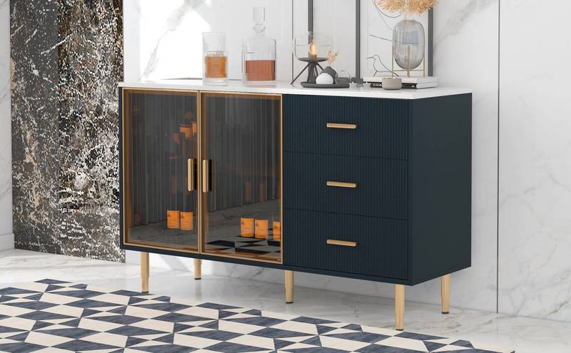 | Product Name | Chic Navy Buffet with Marble Top and Glass Doors |