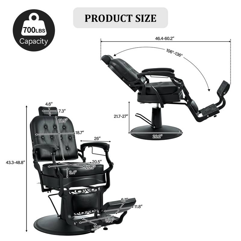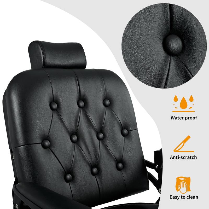 - Introducing our Heavy Duty Vintage Recline Barber Chair, designed to elevate any salon experience. Crafted from durable metal and PU leather, this chair combines style and functionality with a classic design that fits seamlessly into any barbershop, beauty salon, or spa.