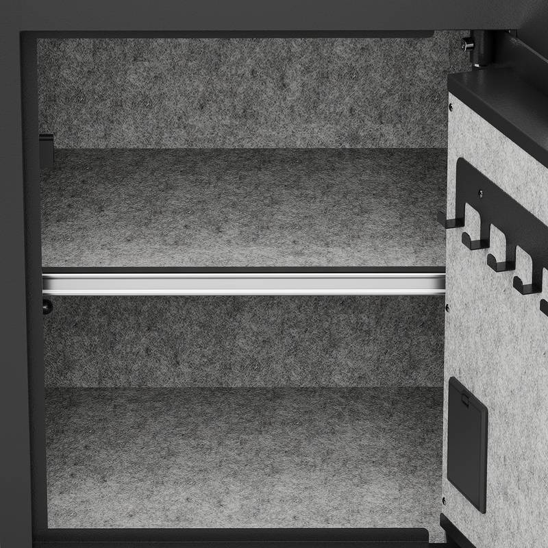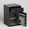 - Key features include an anti-theft alarm that activates at any sign of tampering, ensuring your property stays safe. The advanced fingerprint recognition and flexible password unlocking prevent unauthorized access. Inside, a spacious design with thoughtful organization makes storing jewelry, important documents, and cash hassle-free.