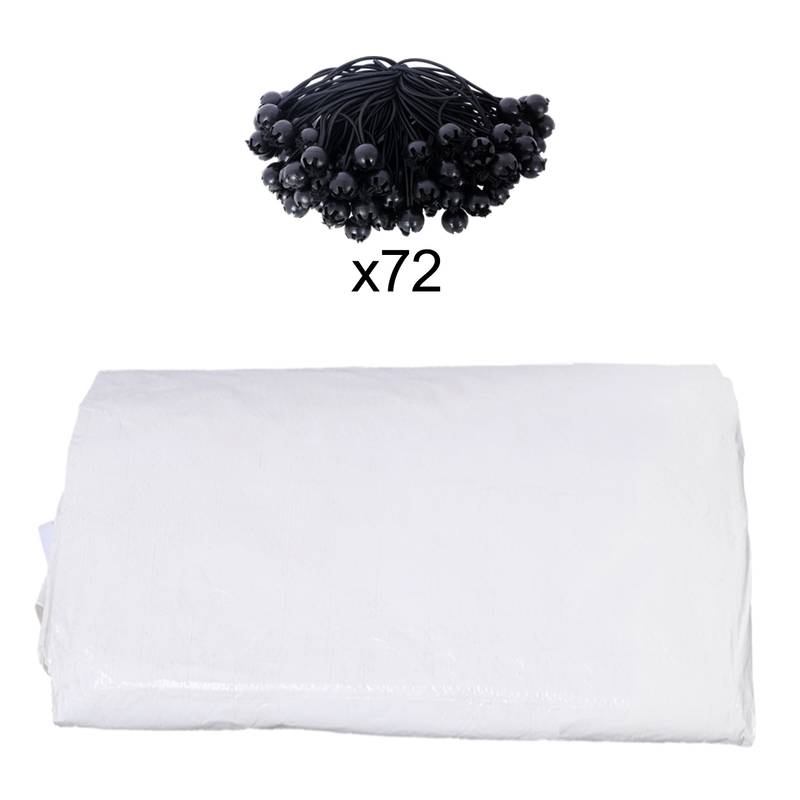 - Measuring 10x20 ft and weighing just 9 lbs, the canopy features 72 elastic buckles for a secure fit that holds strong in harsh conditions. Enhanced edge reinforcement around the grommets ensures added stability, preventing tearing and ensuring long-lasting use.