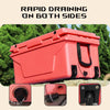 - Designed for ease of use, it features heavy-duty rubber latches that create a tight seal, comfortable padded handles for easy transport, and a rapid drain system for hassle-free cleaning. Plus, the built-in bottle opener and molded fish gauge add to its convenience for outdoor enthusiasts.