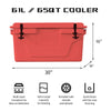- With a spacious 65-quart capacity, it comfortably holds up to 54 standard aluminum cans, making it perfect for parties, camping, or picnics. Sturdy LLDPE construction is both eco-friendly and UV-resistant, ensuring durability inside and out.