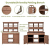 - This sturdy bench combines a durable fir wood frame with an ergonomic design, making gardening tasks comfortable and enjoyable. With ample storage including 6 drawers, 2 cabinets, and 3 adjustable shelves, you'll have plenty of space to keep your tools and supplies organized.