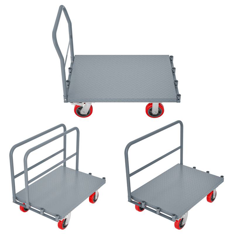 - This robust cart features a weight capacity of 2000 pounds and a spacious 35"x23" flatbed, making it ideal for moving items like plywood, drywall, and more. The dual-side poles provide extra stability while the single handlebar ensures effortless steering around corners and through doorways.